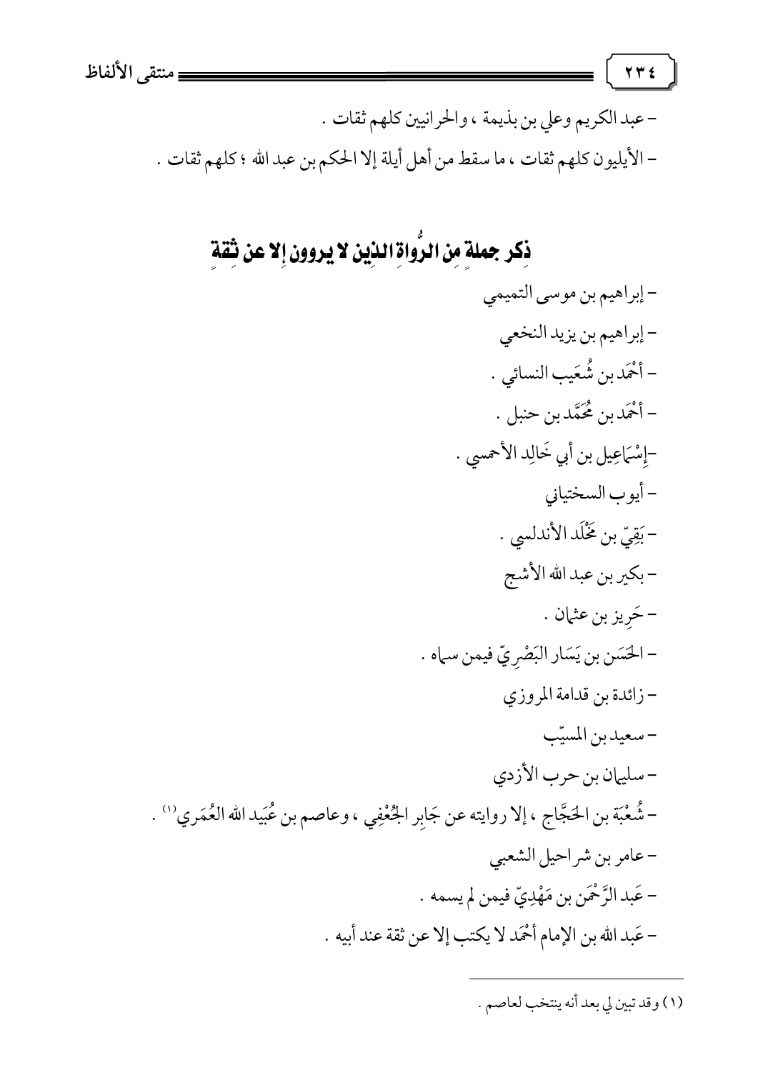 ذكر جملة من الرواة الذين لا يروون إلا عن ثقة