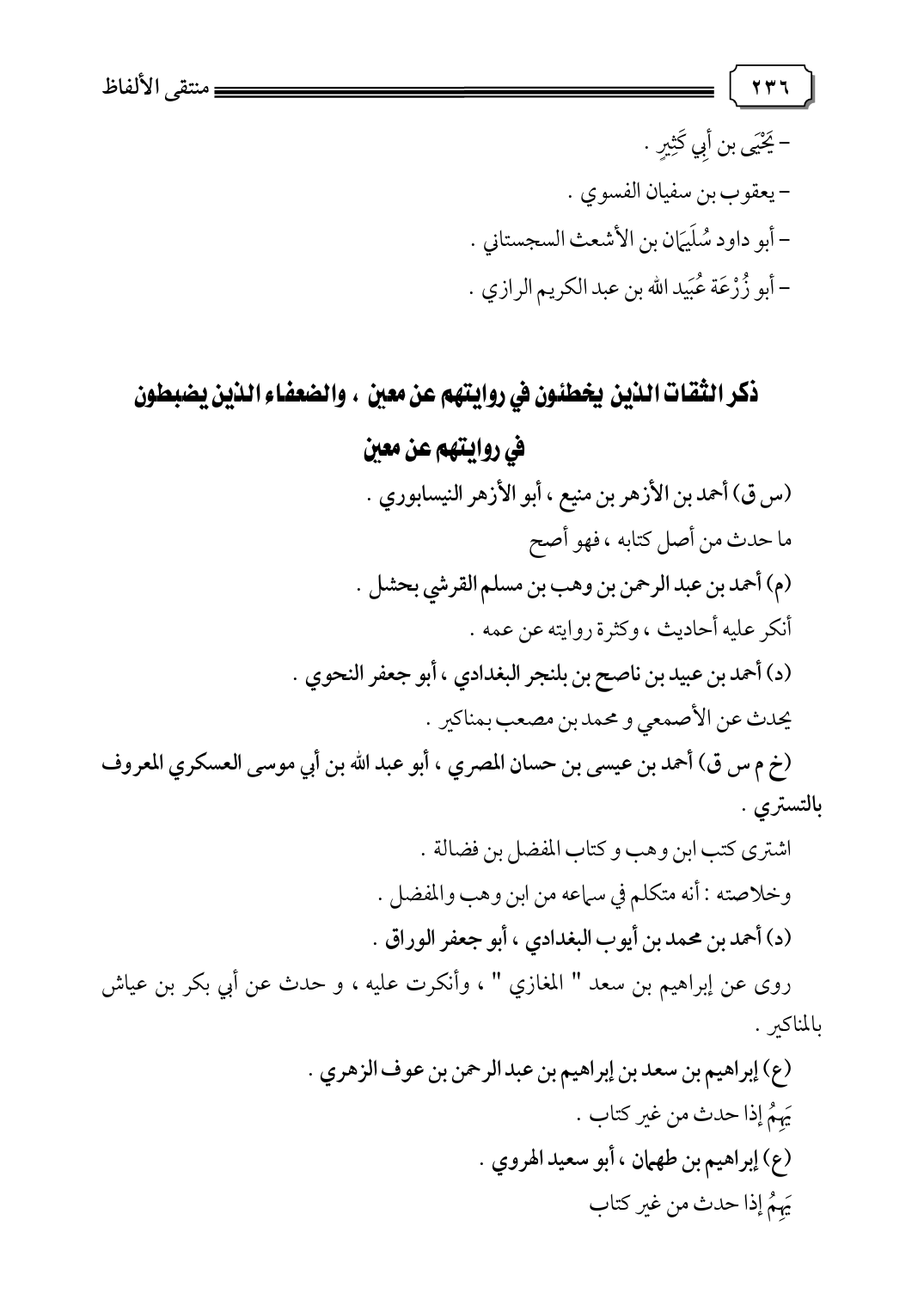 ذكر الثقات الذين يخطئون في روايتهم عن معين، والضعفاء الذين يضبطون في روايتهم عن معين