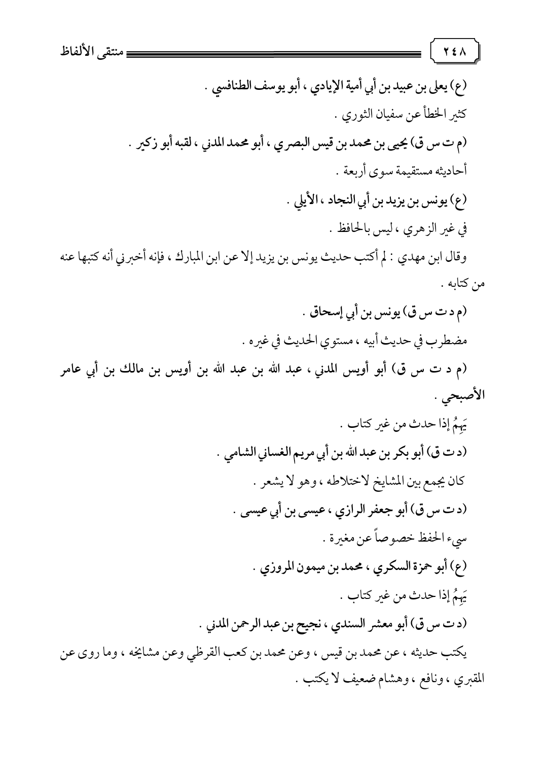 (م ت س ق) يحيى بن محمد بن قيس البصري، أبو محمد المدني، لقبه أبو زكير.