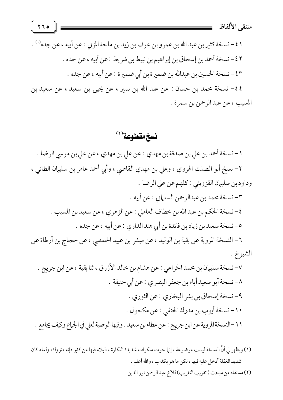 ٢ - نسخ أبو الصلت الهروي، وعلي بن مهدي القاضي، وأبي أحمد عامر بن سليمان الطائي، وداود بن سليمان القزويني: كلهم عن علي الرضا.