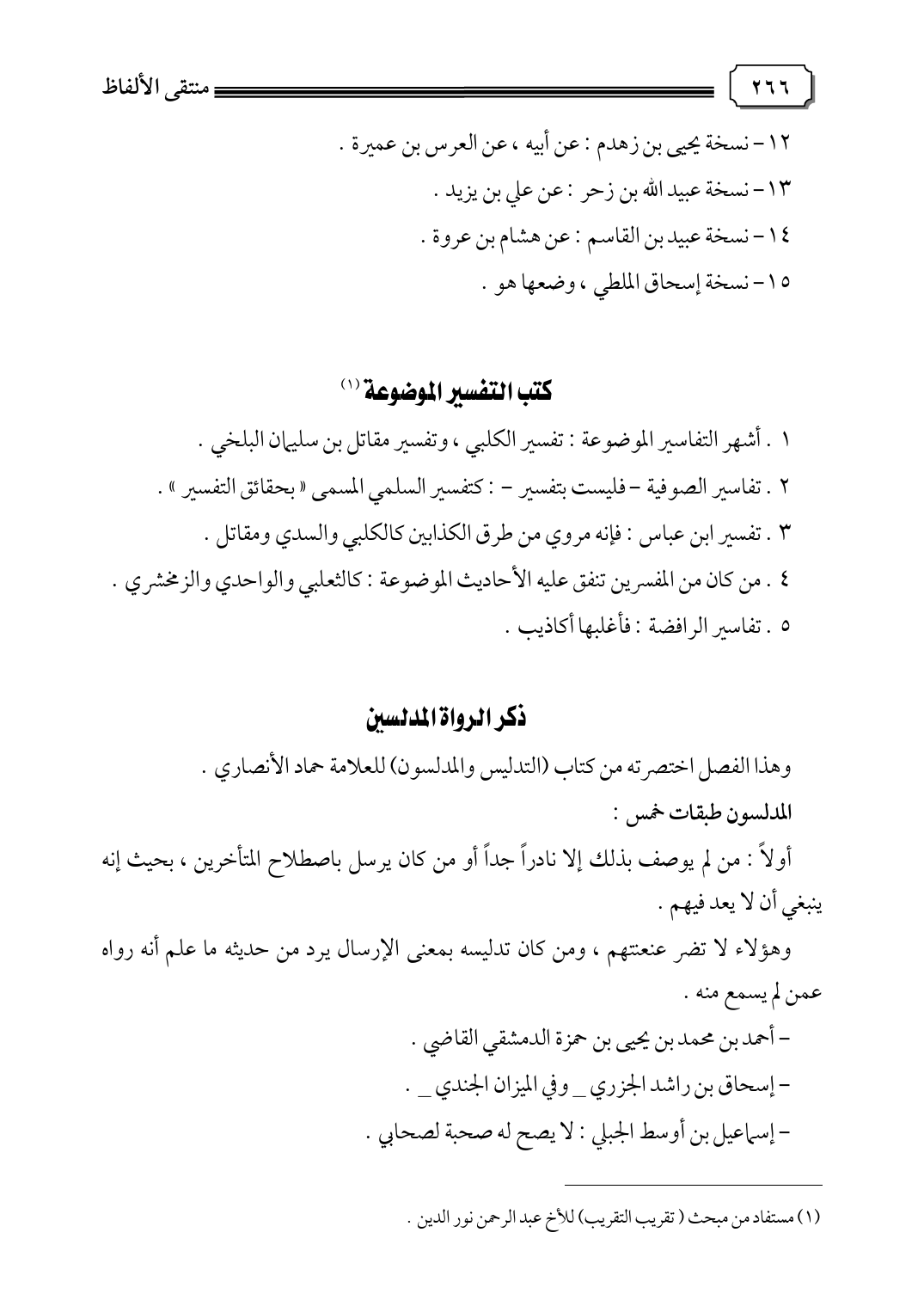 وهذا الفصل اختصرته من كتاب (التدليس والمدلسون) للعلامة حماد الأنصاري.