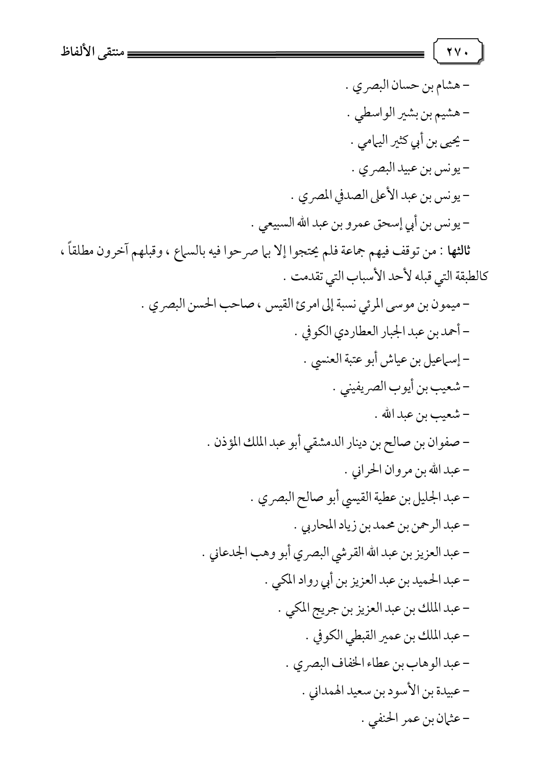 ثالثها: من توقف فيهم جماعة فلم يحتجوا إلا بما صرحوا فيه بالسماع، وقبلهم آخرون مطلقًا، كالطبقة التي قبله لأحد الأسباب التي تقدمت.