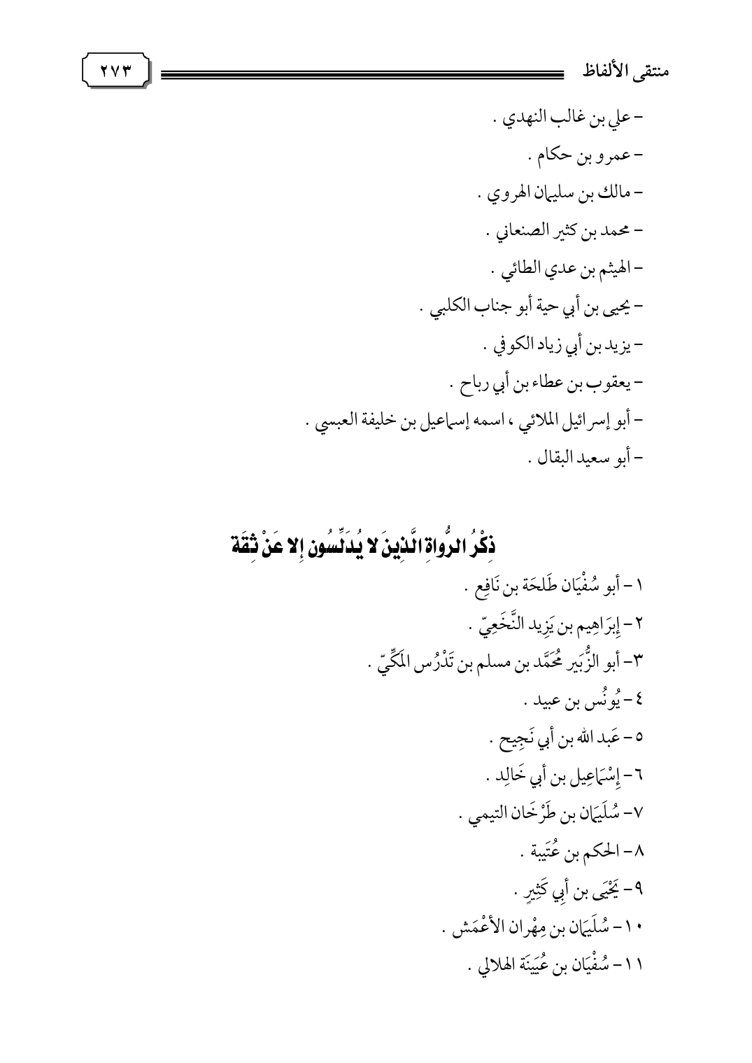 ذكر الرواة الذين لا يدلسون إلا عن ثقة