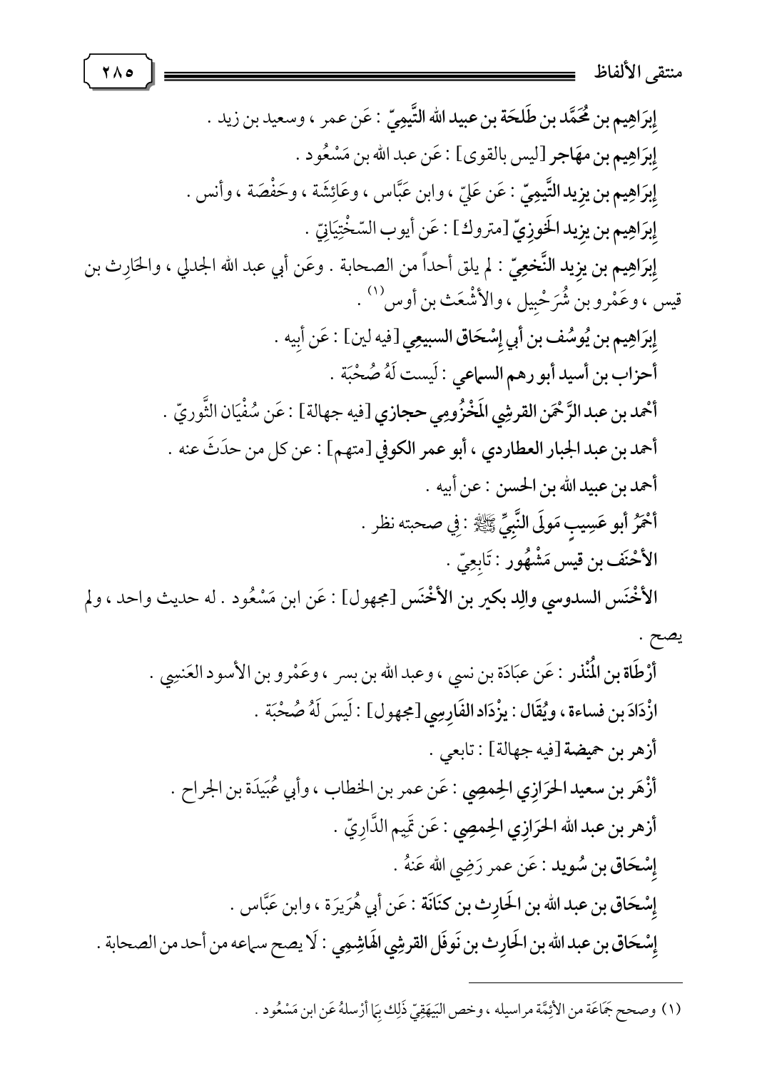 (١) وصحح جَمَاعَة من الأئِمَّة مراسيله، وخص البَيهَقِيّ ذَلِك بِمَا أرْسلهُ عَن ابن مَسْعُود.
