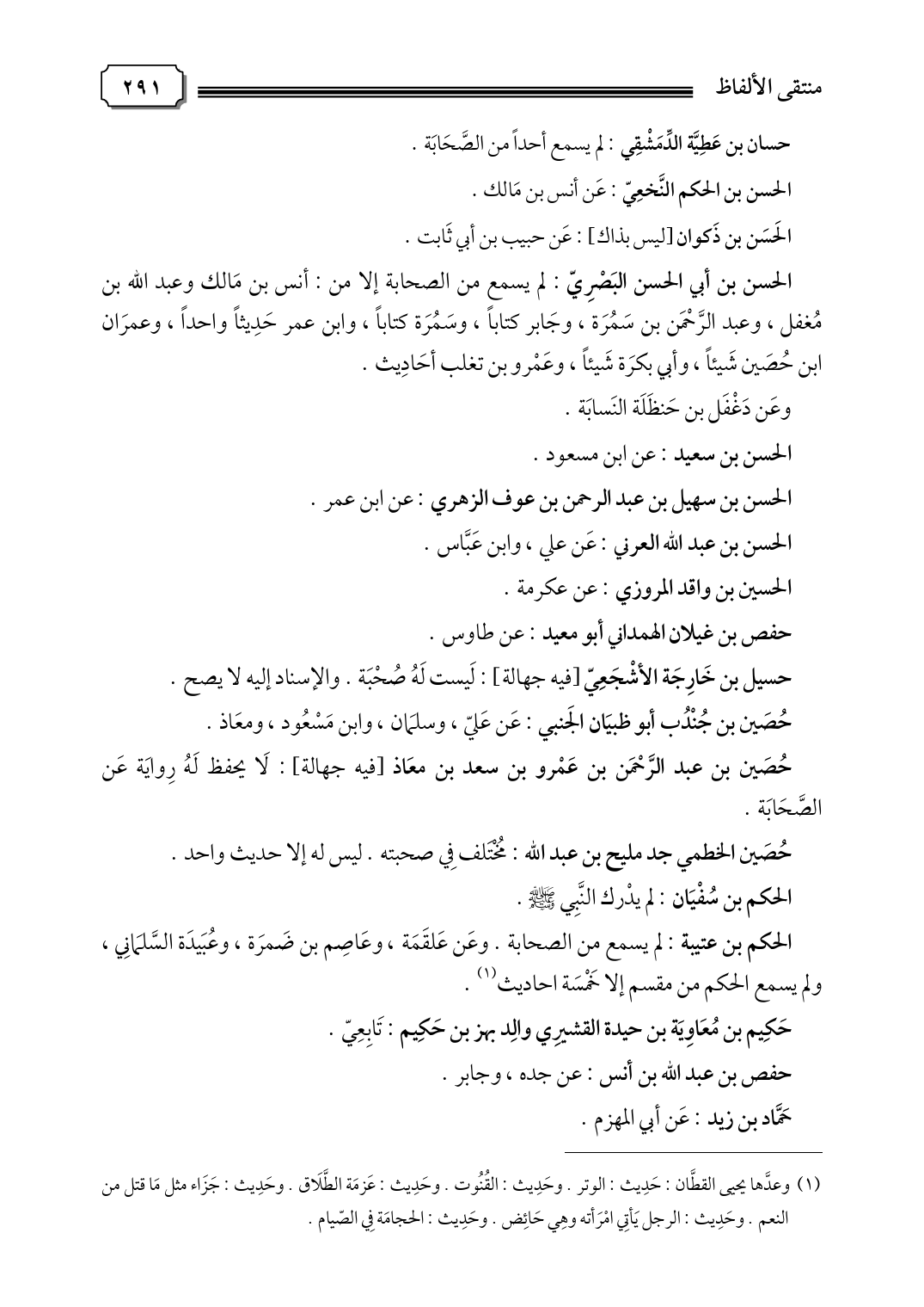 حُصَين بن عبد الرَّحْمَن بن عَمْرو بن سعد بن معَاذ [فيه جهالة]: لَا يحفظ لَهُ رِوايَة عَن الصَّحَابَة.