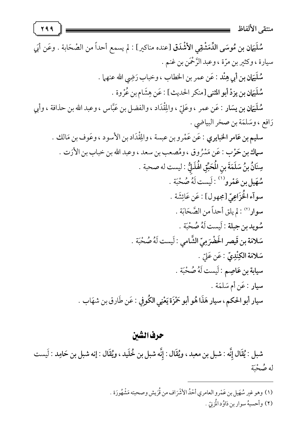 سِنَانُ بنُ سَلَمَةَ بنِ المُحَبِّقِ الُهذَلِيُّ: ليست له صحبة.