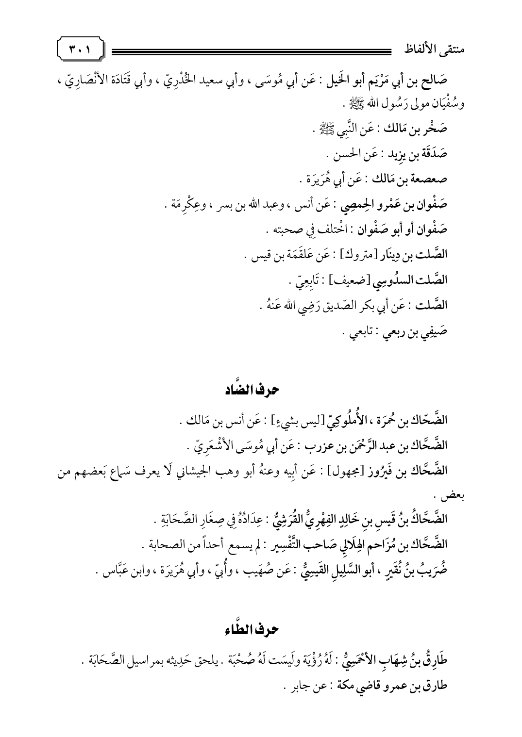 الضَّحَّاك بن فَيرُوز [مجهول]: عَن أبِيه وعنهُ أبو وهب الجيشاني لَا يعرف سَماع بَعضهم من بعض.