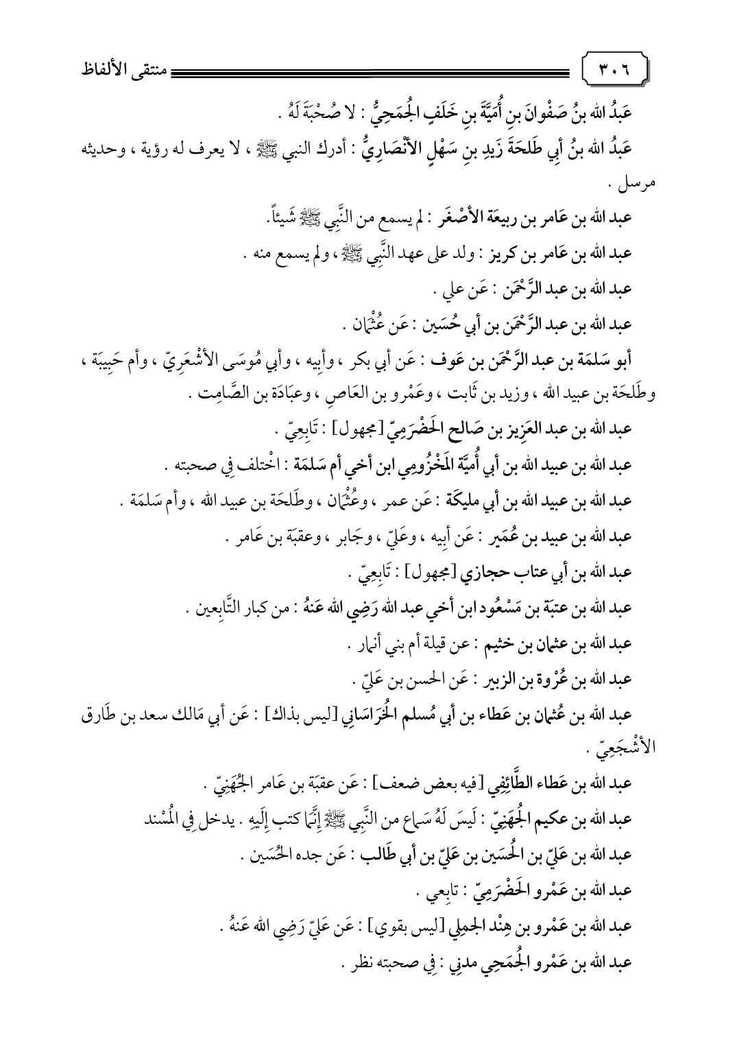عبد الله بن عبيد الله بن أبي مليكَة: عَن عمر، وعُثْمَان، وطَلحَة بن عبيد الله، وأم سَلمَة.