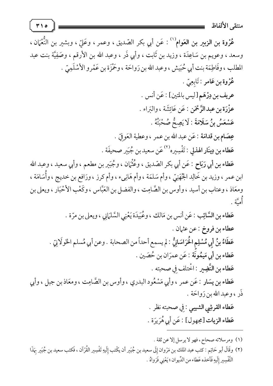 (٢) وقَالَ أبو حَاتِم: كتب عبد الملك بن مَرْوان إِلَى سعيد بن جُبَير أن يكْتب إِلَيهِ تَفْسِير القُرْآن، فَكتب سعيد بن جُبَير بِهَذَا التَّفْسِير إِلَيهِ فَأخذه عَطاء من الدِّيوان؛ يَعْنِي فَرَواهُ.