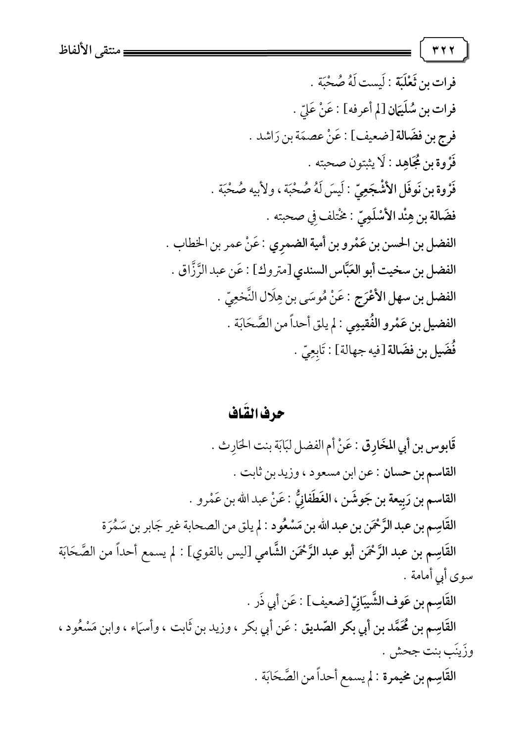 القَاسِم بن عبد الرَّحْمَن أبو عبد الرَّحْمَن الشَّامي [ليس بالقوي]: لم يسمع أحدًا من الصَّحَابَة سوى أبي أمامة.