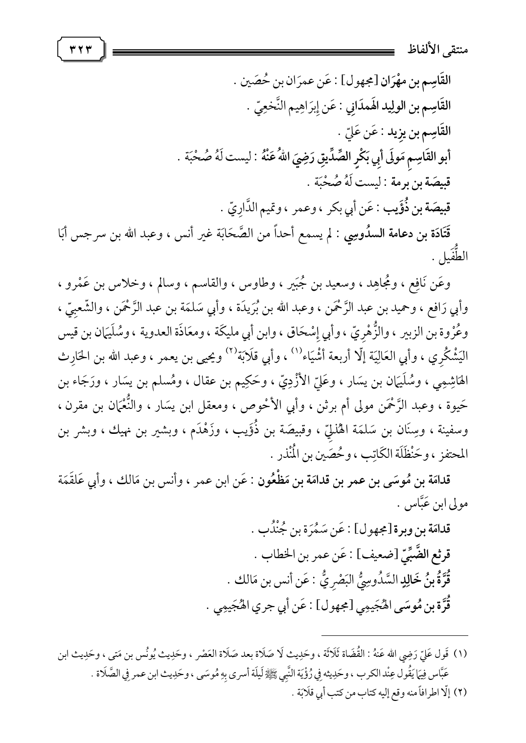 قبيصَة بن ذُؤَيب: عَن أبي بكر، وعمر، وتميم الدَّارِيّ.