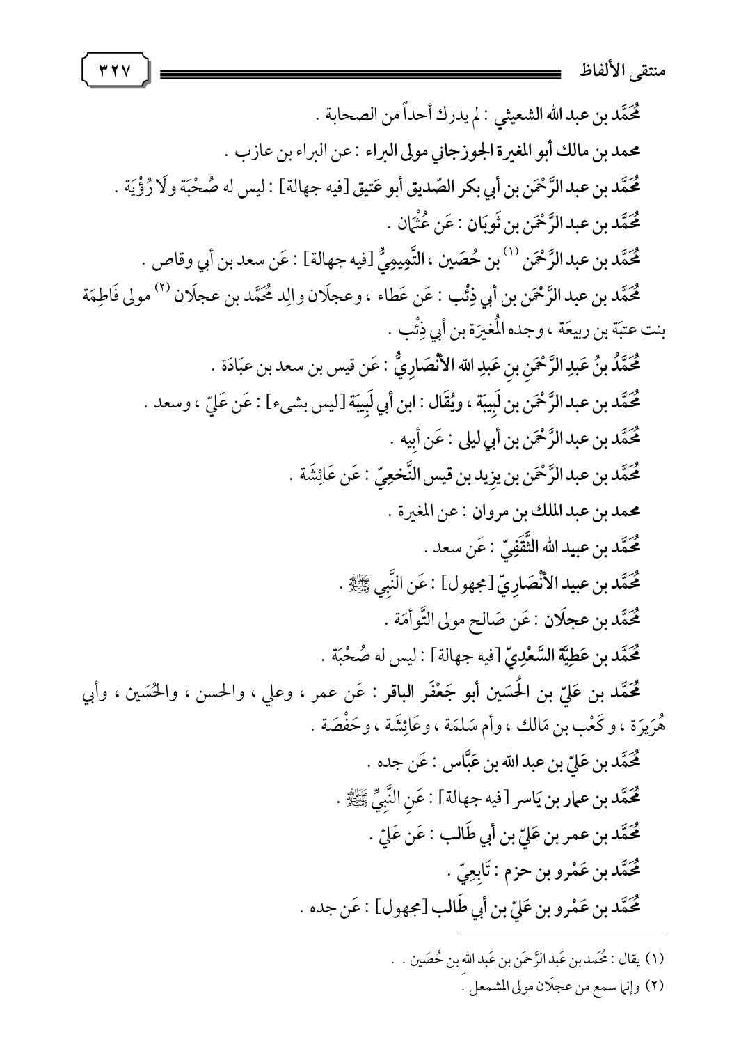 مُحَمَّد بن عبد الله الشعيثي: لم يدرك أحدًا من الصحابة.