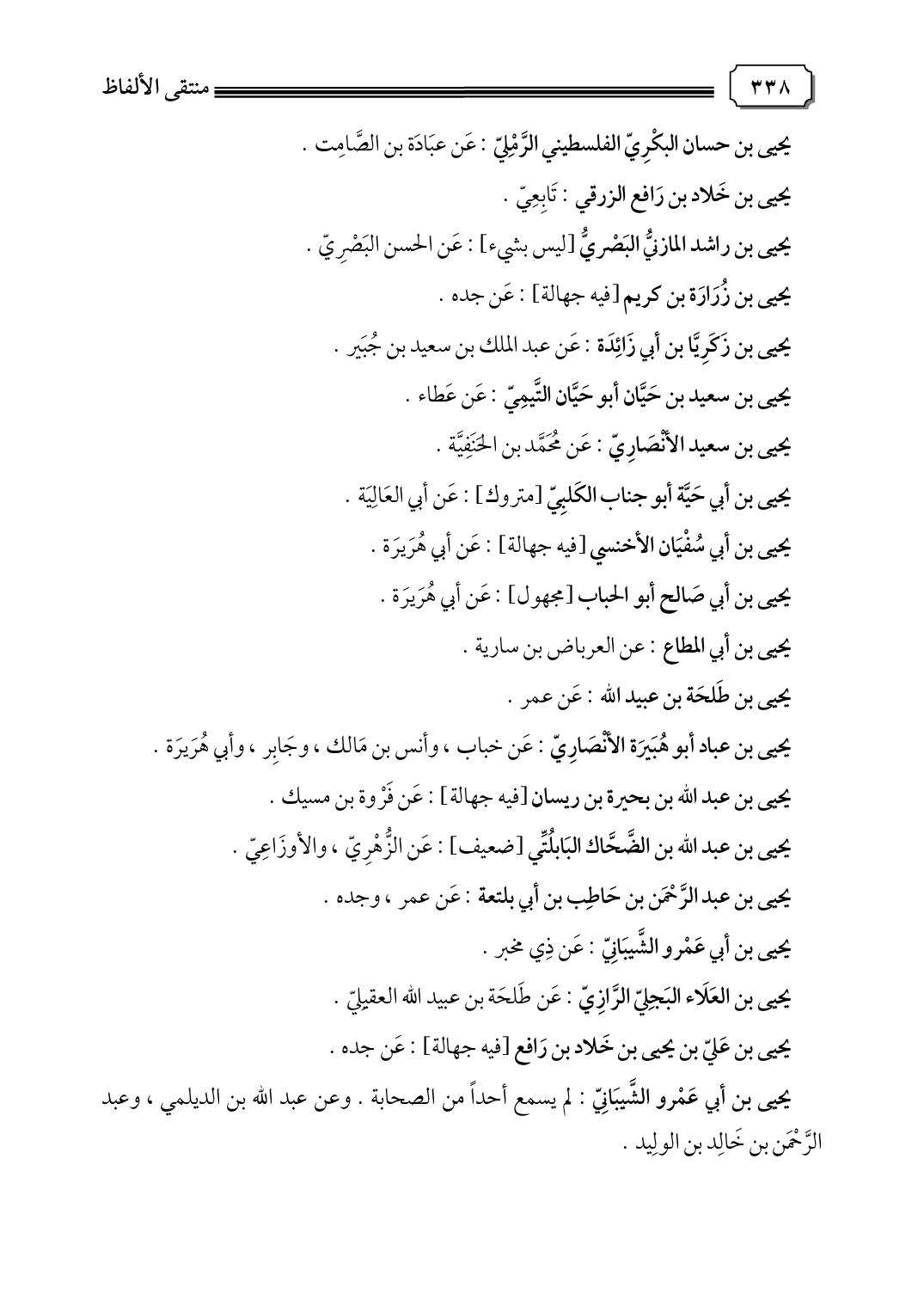 يحيى بن حسان البكْرِيّ الفلسطيني الرَّمْلِيّ: عَن عبَادَة بن الصَّامِت.