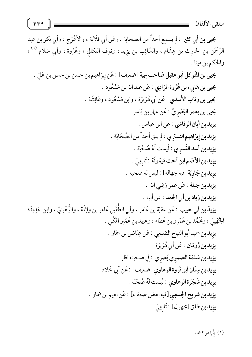 يحيى بن هَانِيء بن عُرْوة المرَادِي: عَن عبد الله بن مَسْعُود.