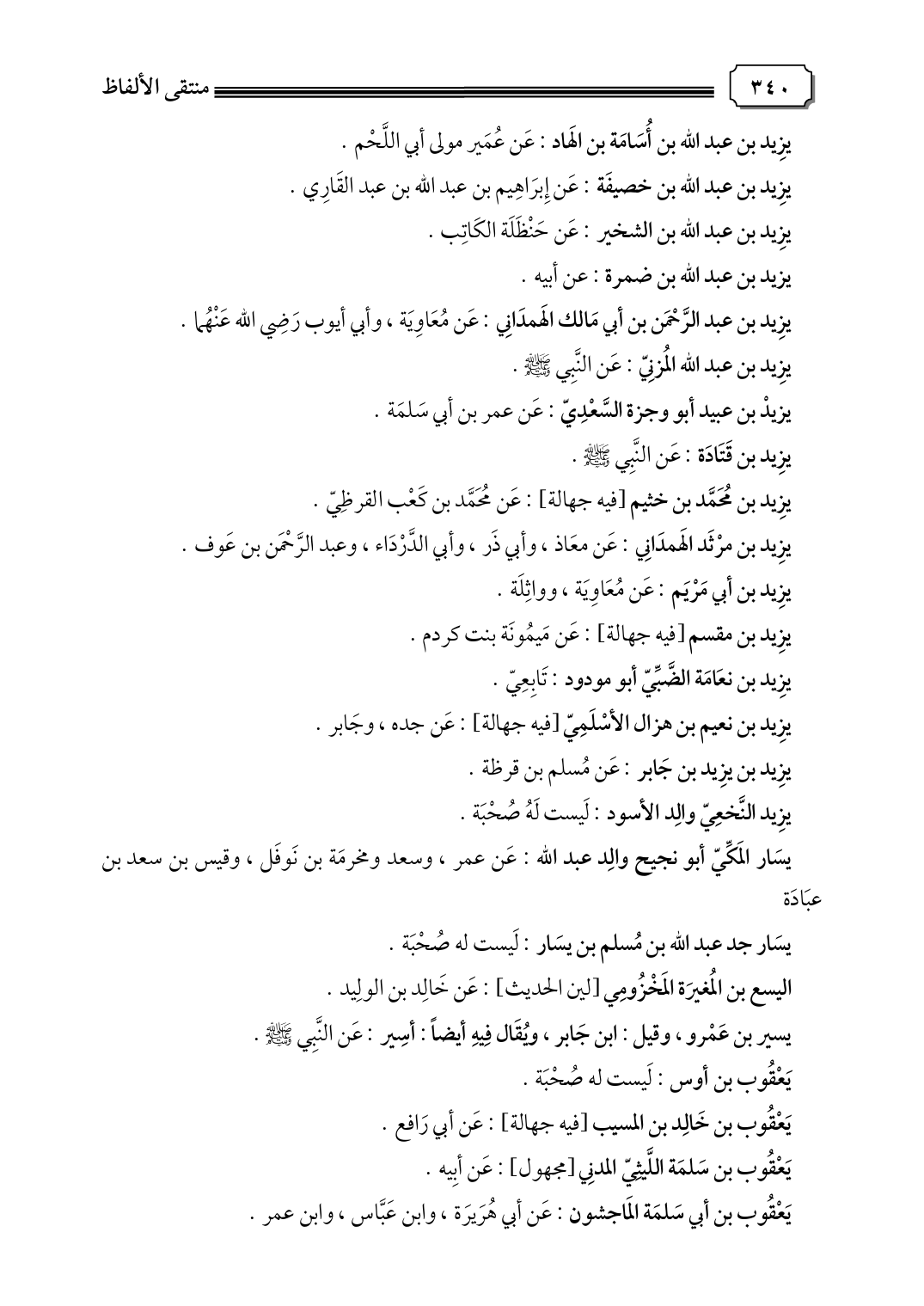 يزِيد بن عبد الله المُزنِيّ: عَن النَّبِي صلى الله عليه وسلم.