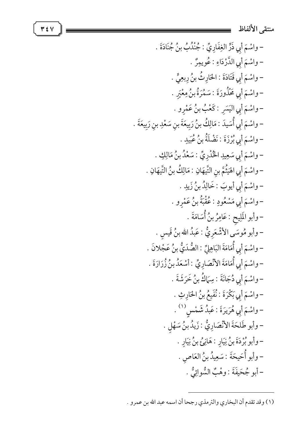 - واسْمَ أبِي هُرَيرَةَ: عَبدُ شَمْسٍ (١).
