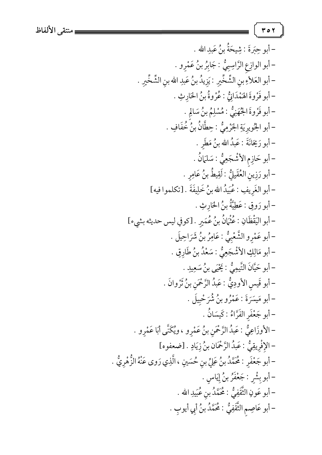 - أبو فَرْوةَ الهَمْدَانِيُّ: عُرْوةُ بنُ الحَارِثِ.