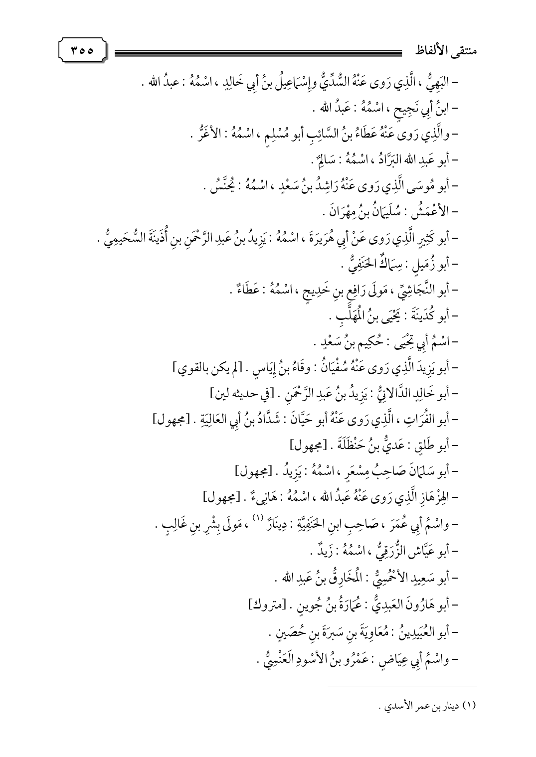 - أبو هَارُونَ العَبدِيُّ: عُمَارَةُ بنُ جُوينٍ. [متروك]
