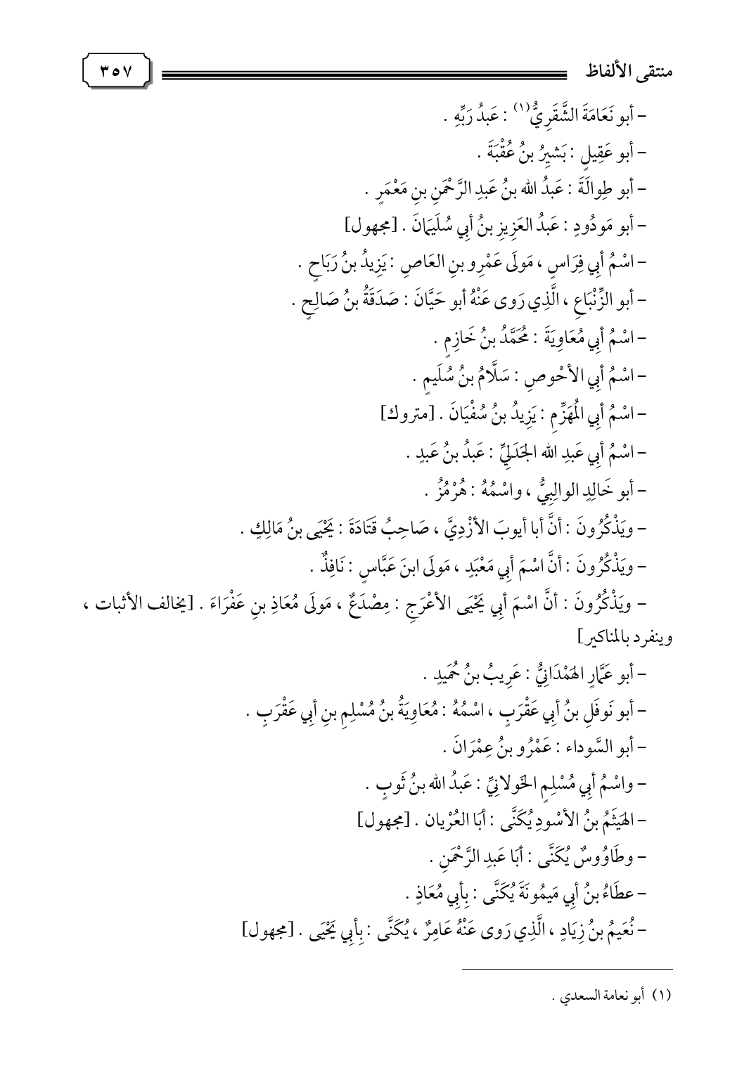 - عطَاءُ بنُ أبِي مَيمُونَةَ يُكَنَّى: بِأبِي مُعَاذٍ.