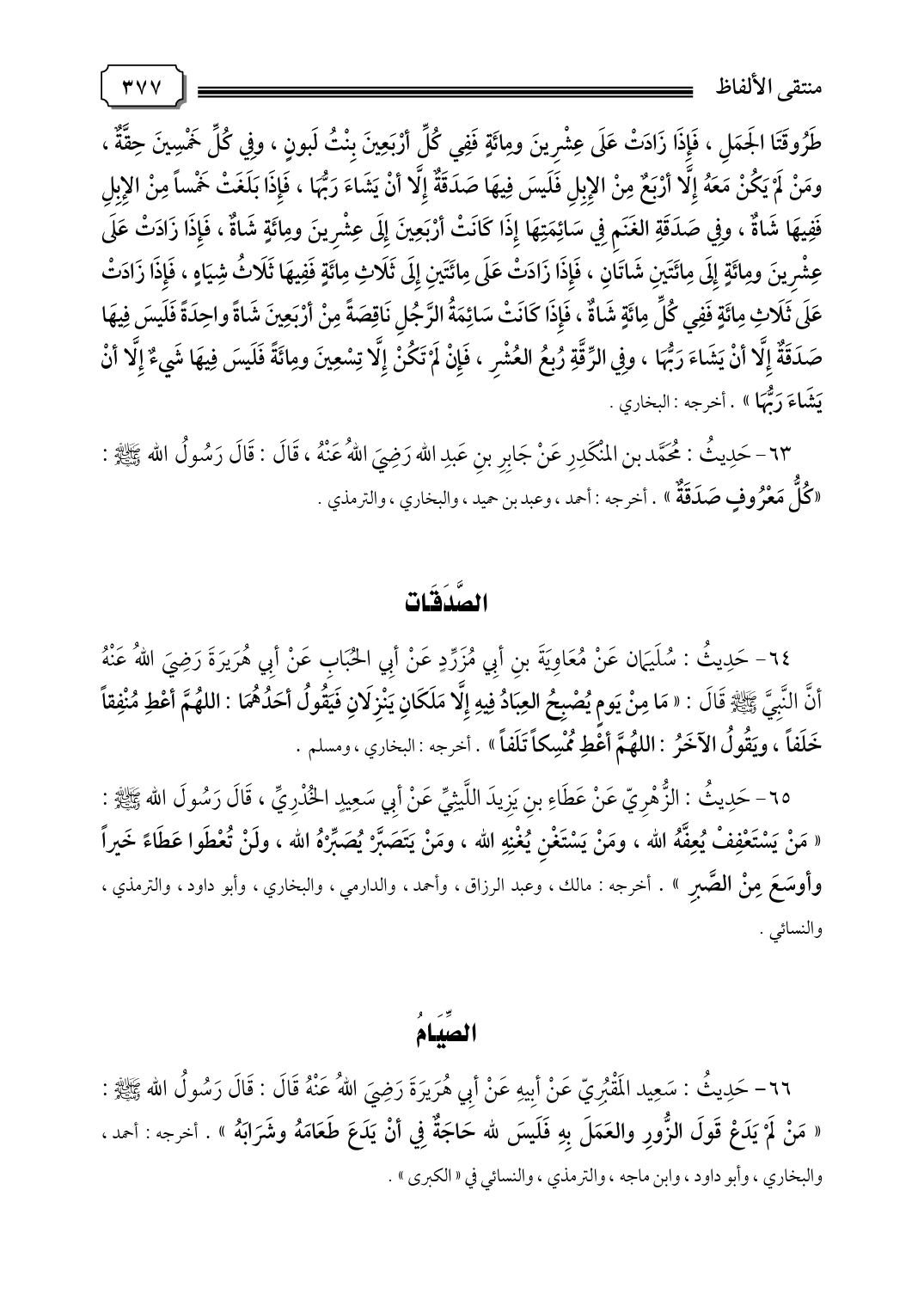 ٦٣ - حَدِيثُ: مُحَمَّد بن المنْكَدِرِ عَنْ جَابِرِ بنِ عَبدِ الله رَضِيَ اللهُ عَنْهُ، قَالَ: قَالَ رَسُولُ الله صلى الله عليه وسلم: "كُلُّ مَعْرُوفٍ صَدَقَةٌ" أخرجه: أحمد، وعبد بن حميد، والبخاري، والترمذي.