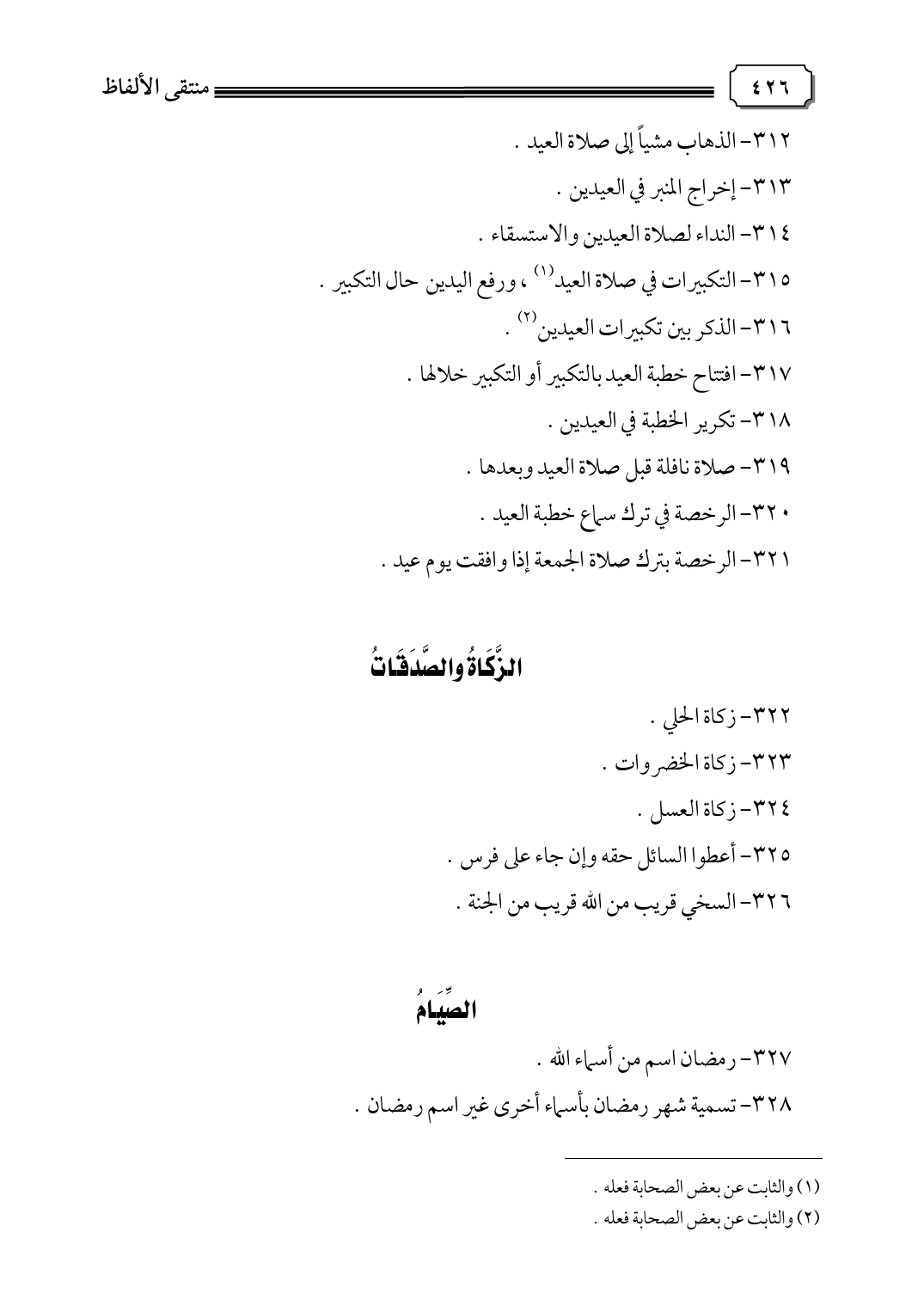 ٣١٧ - افتتاح خطبة العيد بالتكبير أو التكبير خلالها.