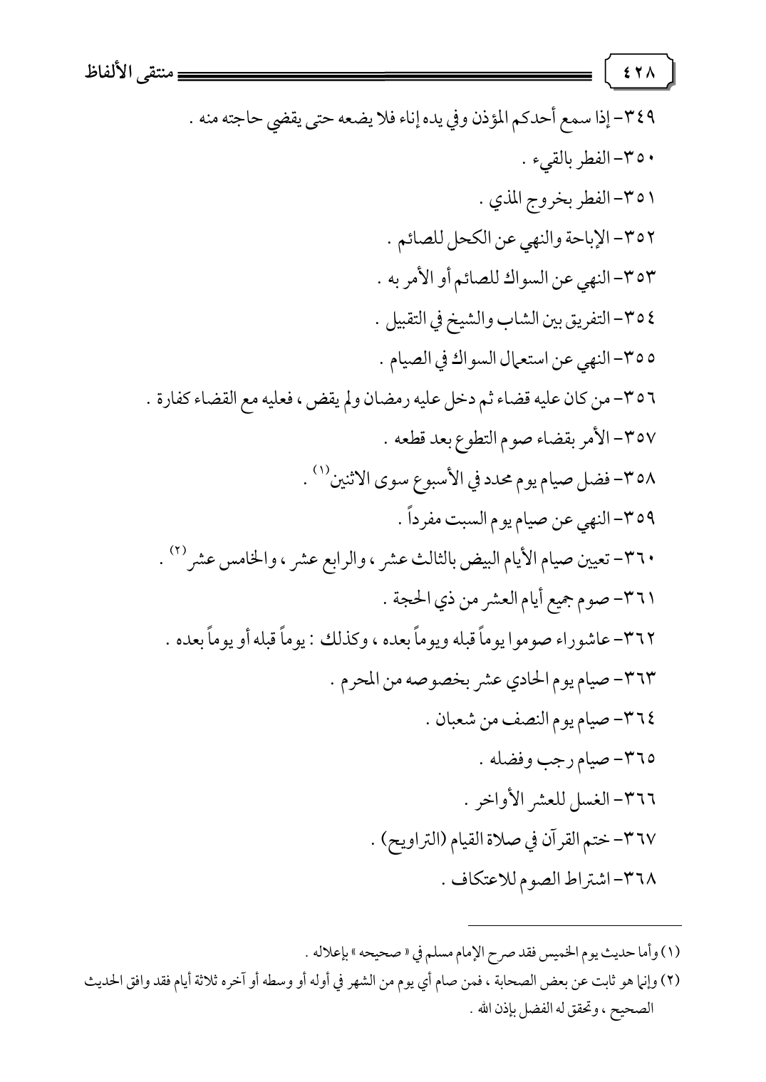 ٣٦٠ - تعيين صيام الأيام البيض بالثالث عشر، والرابع عشر، والخامس عشر (٢).