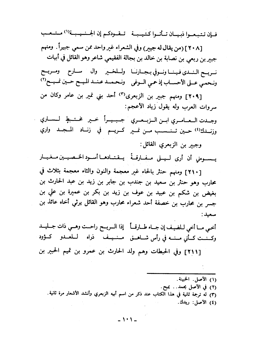 ومنهم جبير بن الزبعرى أحد بني نمير بن عامر وكان من سروات العرب وله يقول زياد الأعجم: