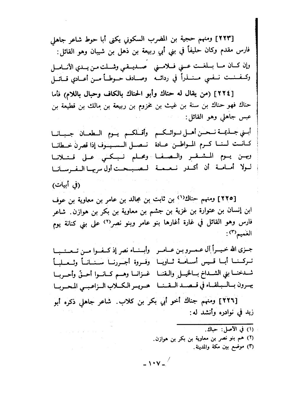في أبيات ومنهم حناك بن ثابت بن مجالد بن عامر بن معاوية بن عوف ابن إنسان بن عتوارة بن غزية بن جشم بن معاوية بن بكر بن هوازن. شاعر فارس وهو القائل في غارة أغارها بن عامر وبنو نضر على بني كنانة يوم الغميم: