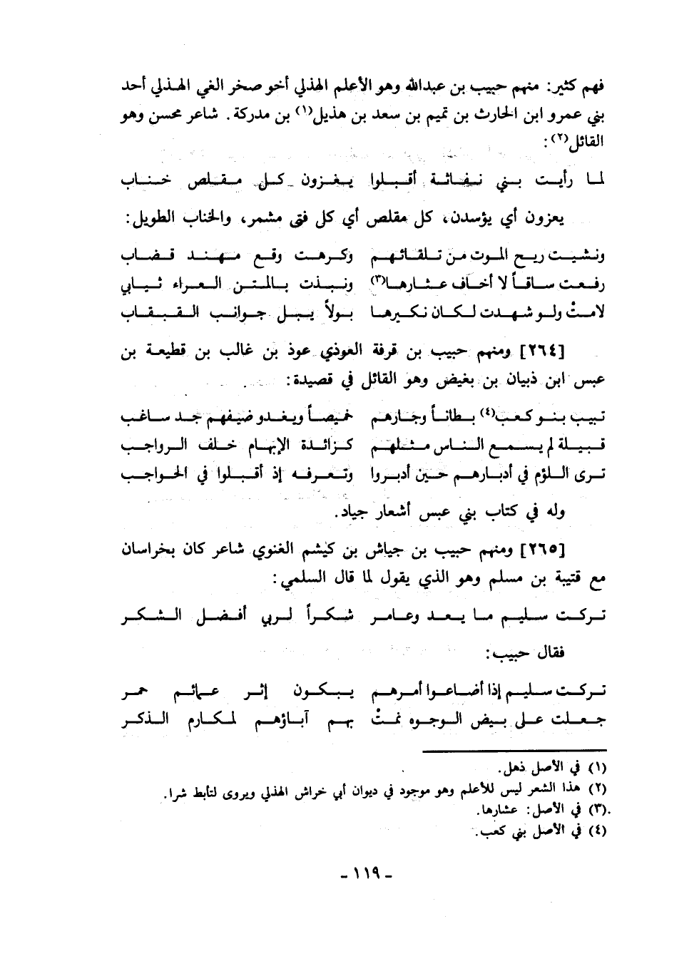 فهم كثير: منهم حبيب بن عبد الله وهو الأعلم الهذلي أخو صخر الغي الهذلي أحد بني عمرو ابن الحارث بن تميم بن سعد بن هذيل بن مدركة. شاعر محسن وهو القائل: