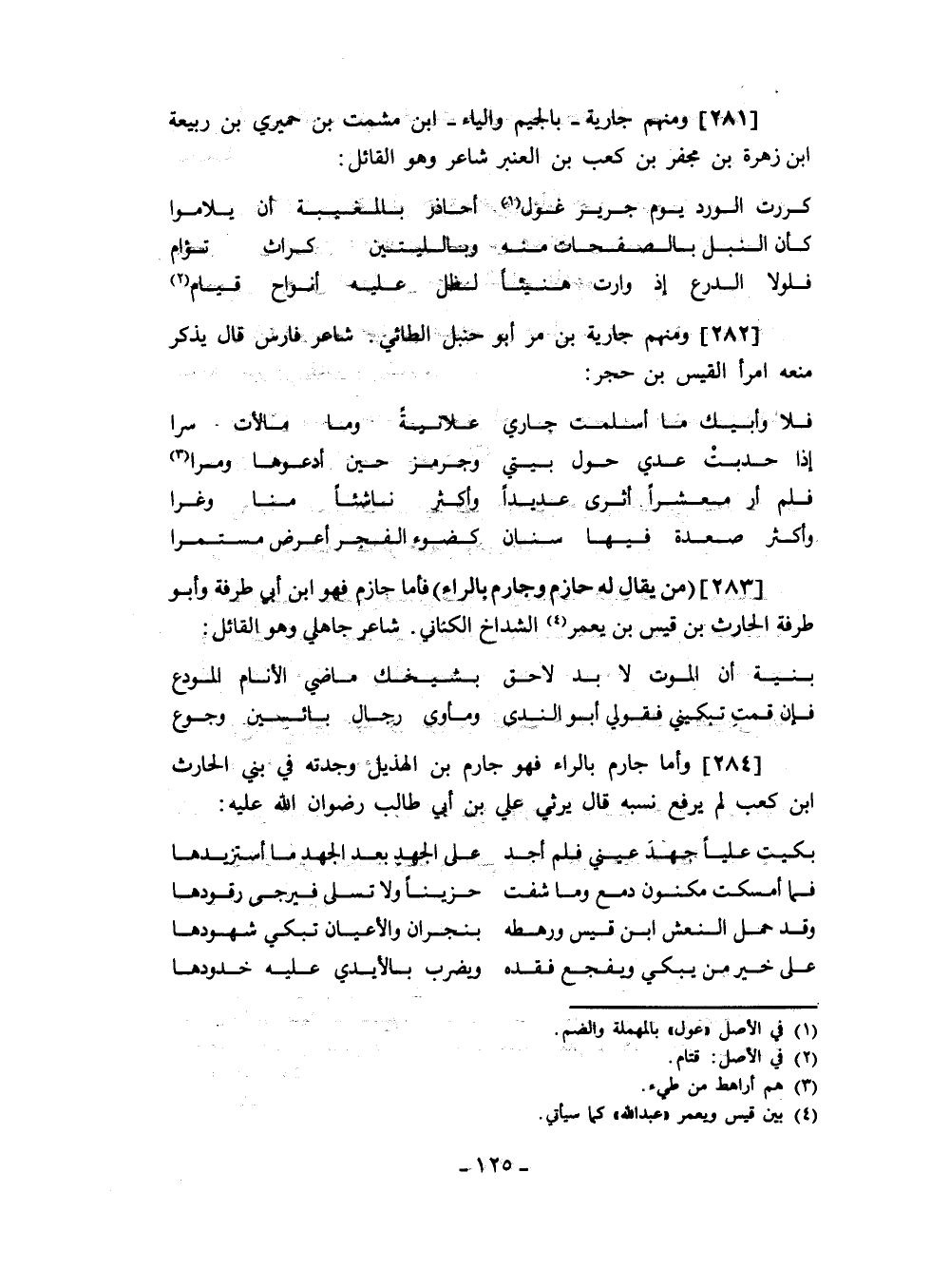 وأما جارم بالراء فهو جارم بن الهذيل وجدته في بني الحارث ابن كعب لم يرفع نسبه قال يرثي علي بن أبي طالب رضوان الله عليه: