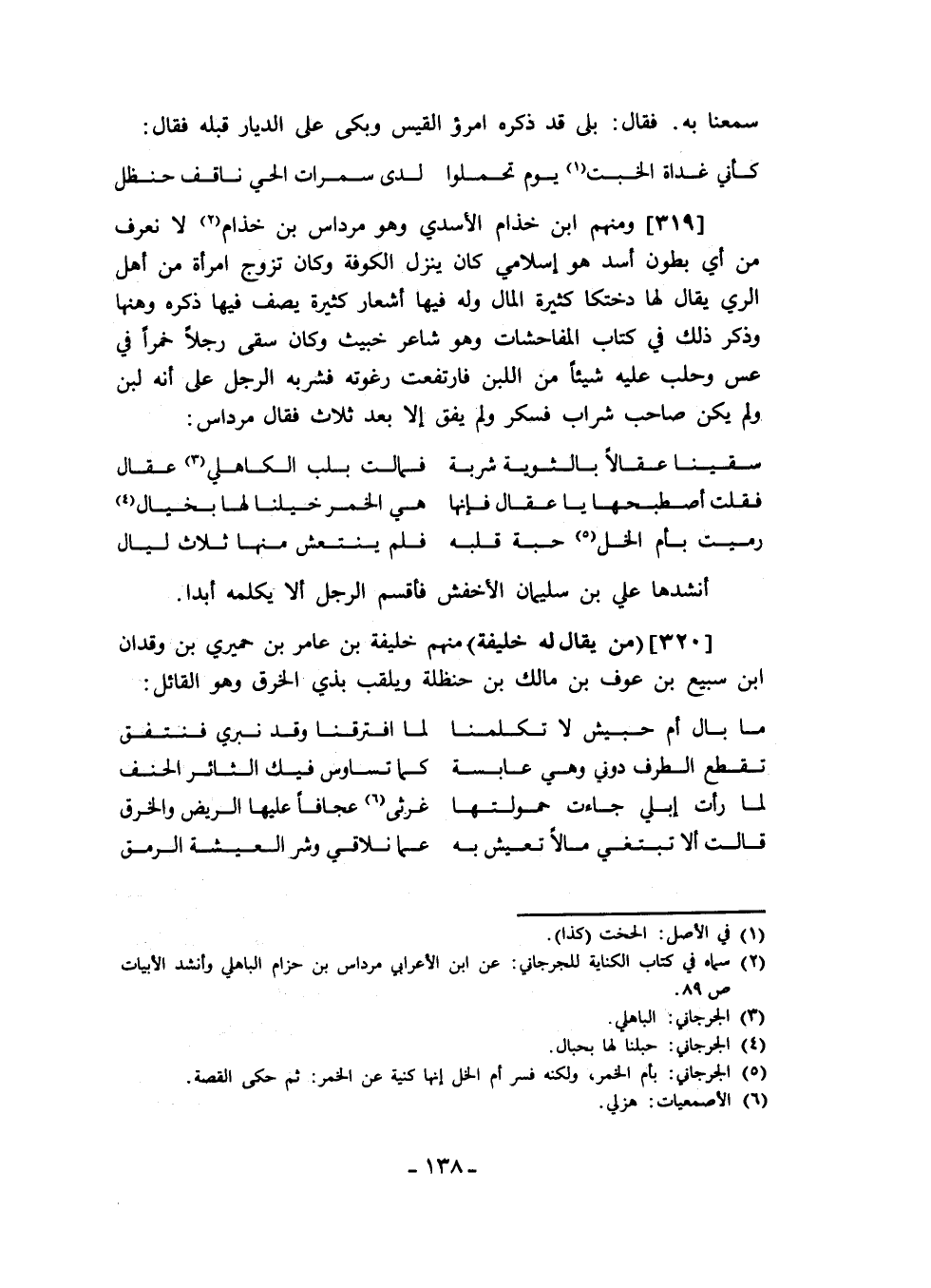 ومنهم ابن خذام الأسدي وهو مرداس بن خذام لا نعرف من أي بطون أسد هو إسلامي كان ينزل الكوفة وكان تزوج امرأة من أهل الري يقال لها دختكا كثيرة المال وله فيها أشعار كثيرة يصف فيها ذكره وهنها وذكر ذلك في كتاب المفاحشات وهو شاعر خبيث وكان سقى رجلاً خمراً في عس وحلب عليه شيئاً من اللبن فارتفعت رغوته فشربه الرجل على أنه لبن ولم يكن صاحب شراب فسكر ولم يفق إلا بعد ثلاث فقال مرداس: