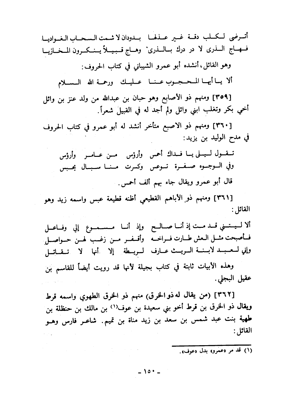 ومنهم ذو الأصبع متأخر أنشد له أبو عمرو في كتاب الحروف في مدح الوليد بن يزيد: