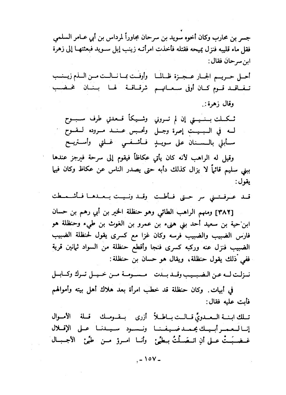 جسر بن محارب وكان أخوه سويد بن سرحان مجاوراً لمرداس بن أبي عامر السلمي فقل ماء قليبه فنزل يميحه فقتله فأخذت امرأته زينب إبل سويد فبعثتها إلى زهرة ابن سرحان فقال: