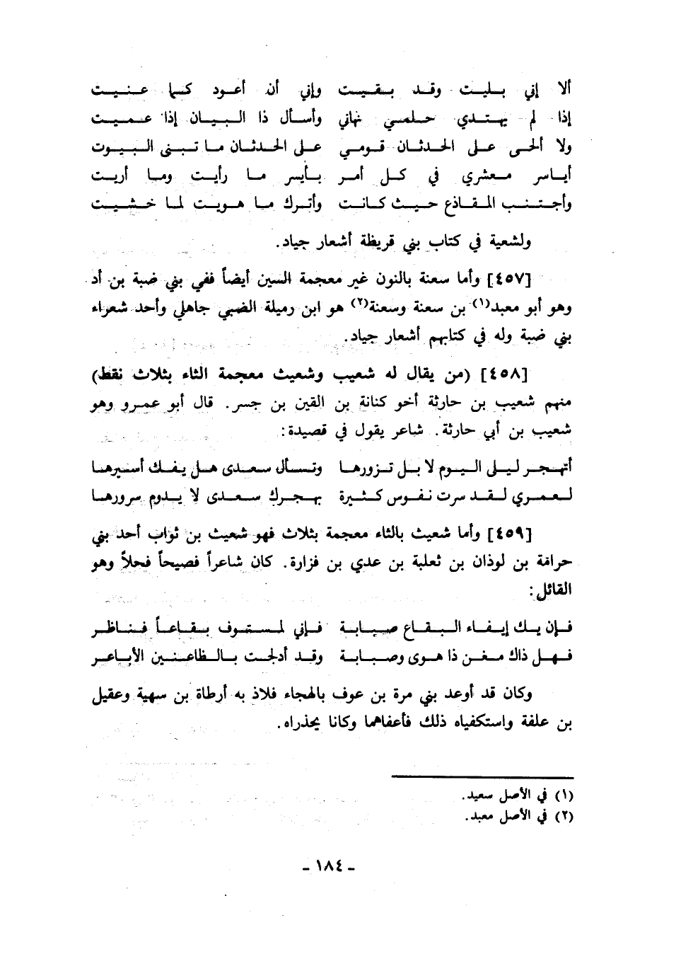 وأما سعنة بالمنون غير معجمة السين أيضاً ففي بني ضبة بن أد وهو أبو معبد بن سعنة وسعنة هو ابن رميلة الضبي جاهلي وأحد شعراء بني ضبة وله في كتابهم أشعار جياد.