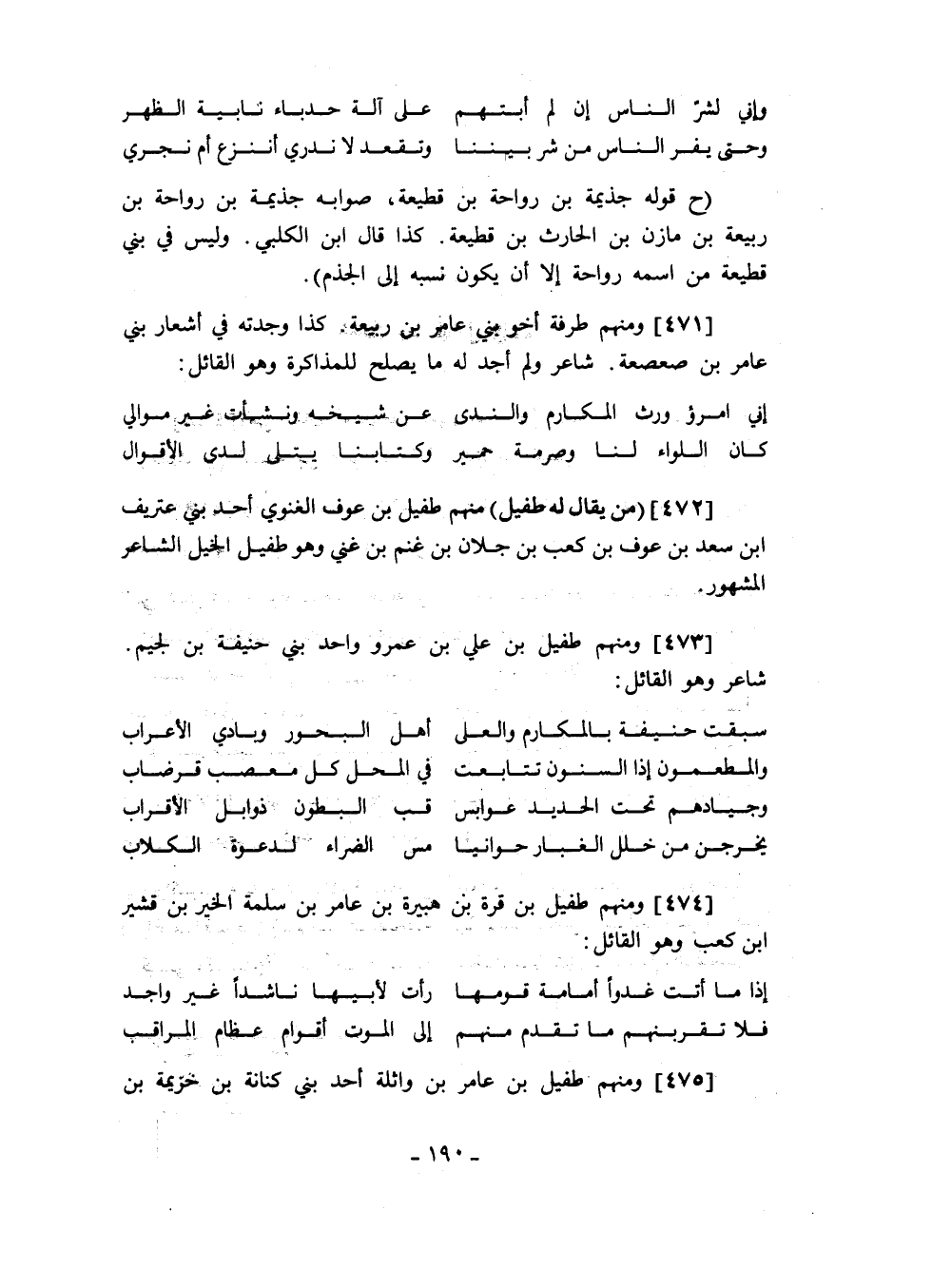 ومنهم طفيل بن قرة بن هبيرة بن عامر بن سلمة الخير بن قشير ابن كعب وهو القائل: