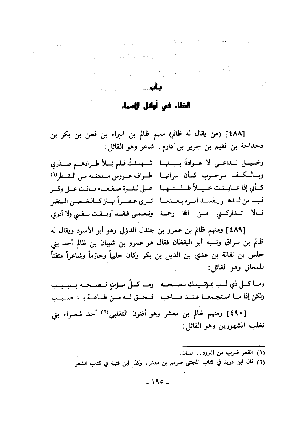 ومنهم ظالم بن معشر وهو أفنون التغلبي أحد شعراء بني تغلب المشهورين وهو القائل: