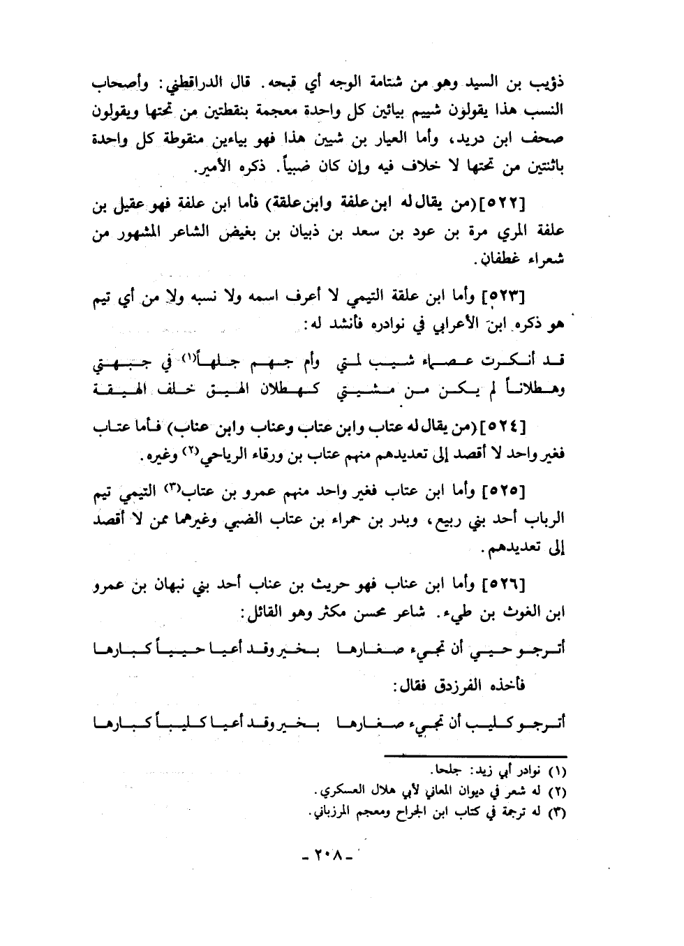 وأما ابن عتاب فغير واحد منهم عمرو بن عتاب التيمي تيم الرباب أحد بني ربيع، وبدر بن حمراء بن عتاب الضبي وغيرهما ممن لا أقصد إلى تعديدهم.