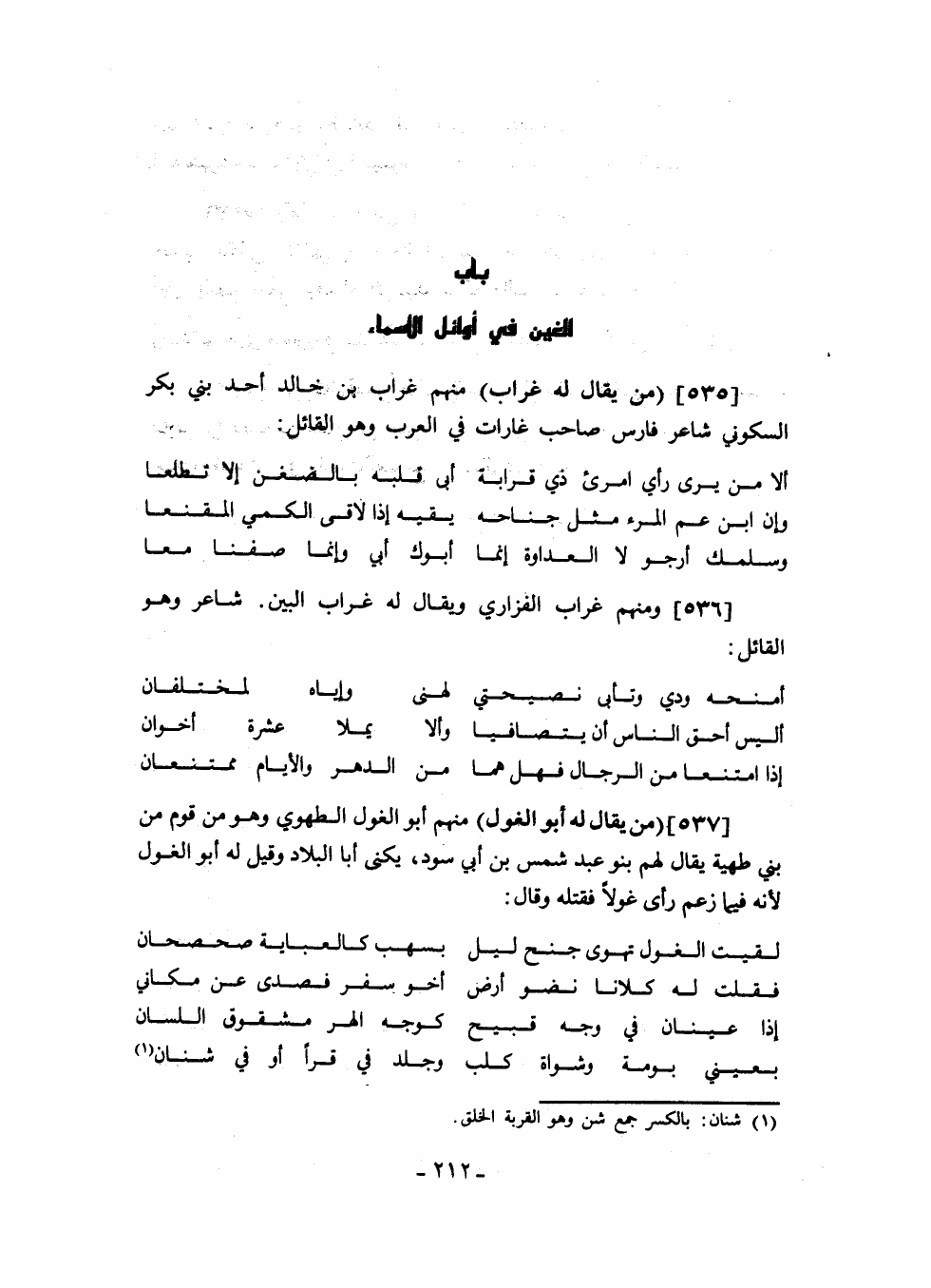 ومنهم غراب الفزاري ويقال له غراب البين. شاعر وهو القائل:
