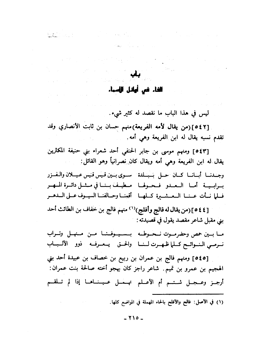 من يقال له فالج وأفلج منهم فالج بن خفاف بن الطائث أحد بني مقبل شاعر مقصد يقول في قصيدته: