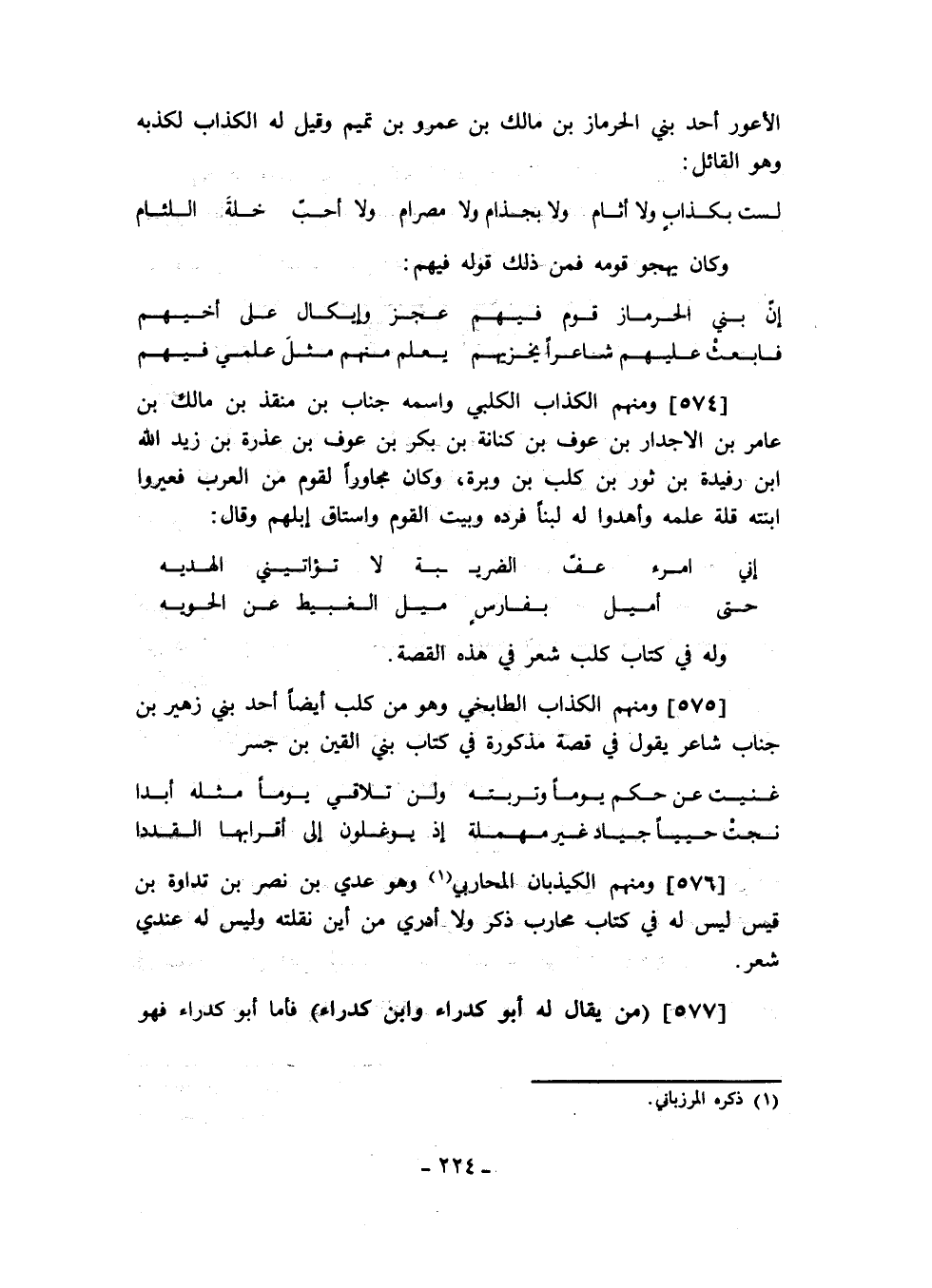 ومنهم الكيذبان المحاربي وهو عدي بن نصر بن تداوة بن قيس له في كتاب محارب ذكر ولا أدري من أين نقلته وليس له عندي شعر.