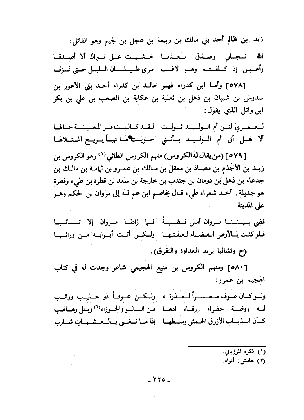ومنهم الكروس بن منيع الهجيمي شاعر وجدت له في كتاب الهجيم بن عمرو: