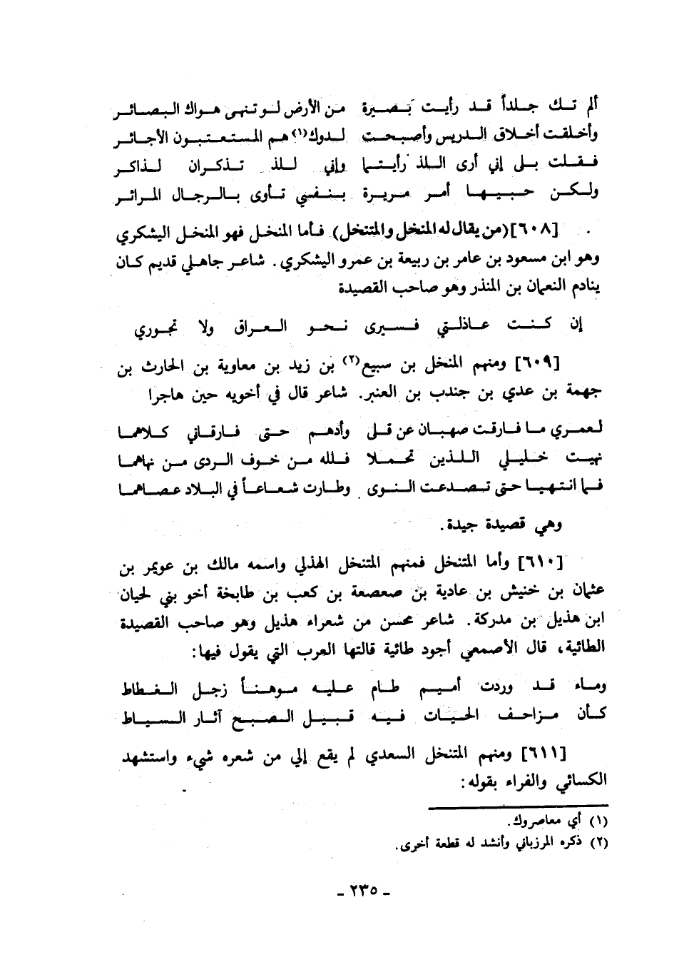 ومنهم المتنخل السعدي لم يقع إلي من شعره شيء واستشهد الكسائي والفراء بقوله: