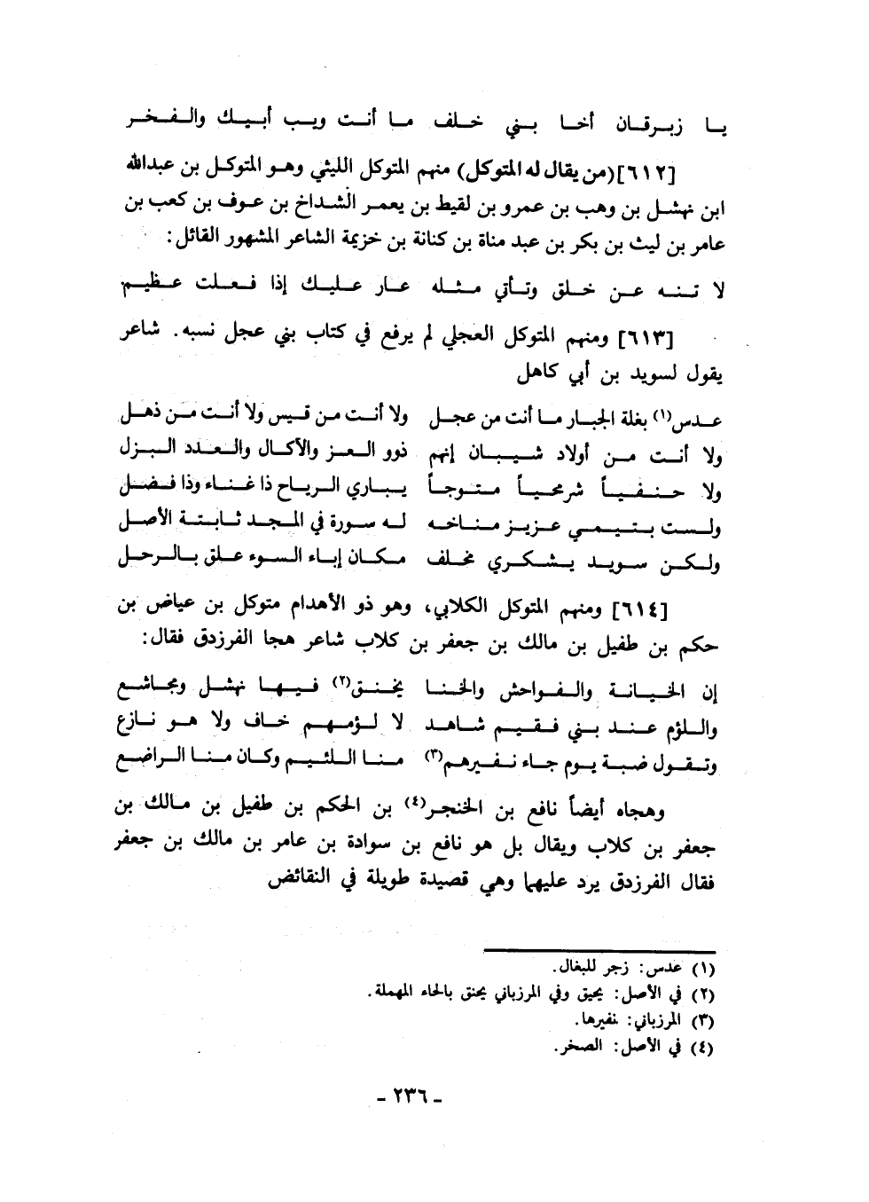 ومنهم المتوكل الكلابي، وهو ذو الأهدام متوكل بن عياض بن حكم بن طفيل بن مالك بن جعفر بن كلاب شاعر هجا الفرزدق فقال: