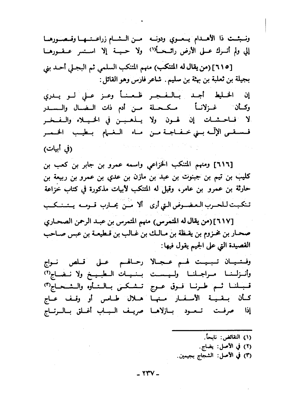 في أبيات ومنهم المتنكب الخزاعي واسمه عمرو بن جابر بن كعب بن كليب بن تيم بن جبنوت بن عبد بن مازن بن عدي بن عمرو بن ربية بن حارثة بن عمرو بن عامر، وقيل له المتنكب لأبيات مذكورة في كتاب خزاعة