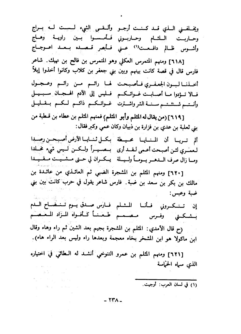 ومنهم المثلم بن عمرو التنوخي أنشد له الطائي في اختياره الذي سماه الحماسة