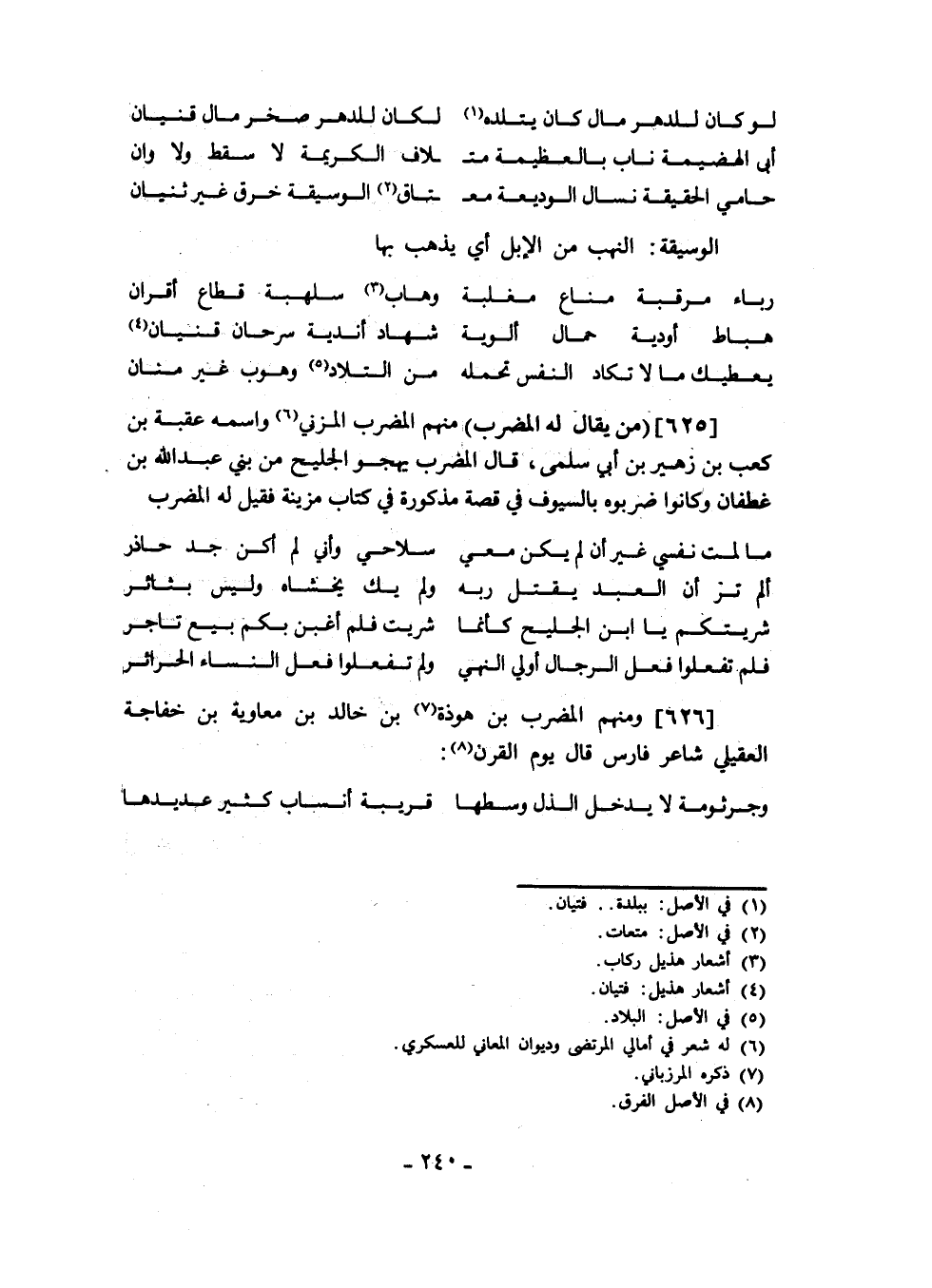 ومنهم المضرب بن هوذة بن خالد بن معاوية بن خفاجة العقيل شاعر فارس قال يوم القرن: