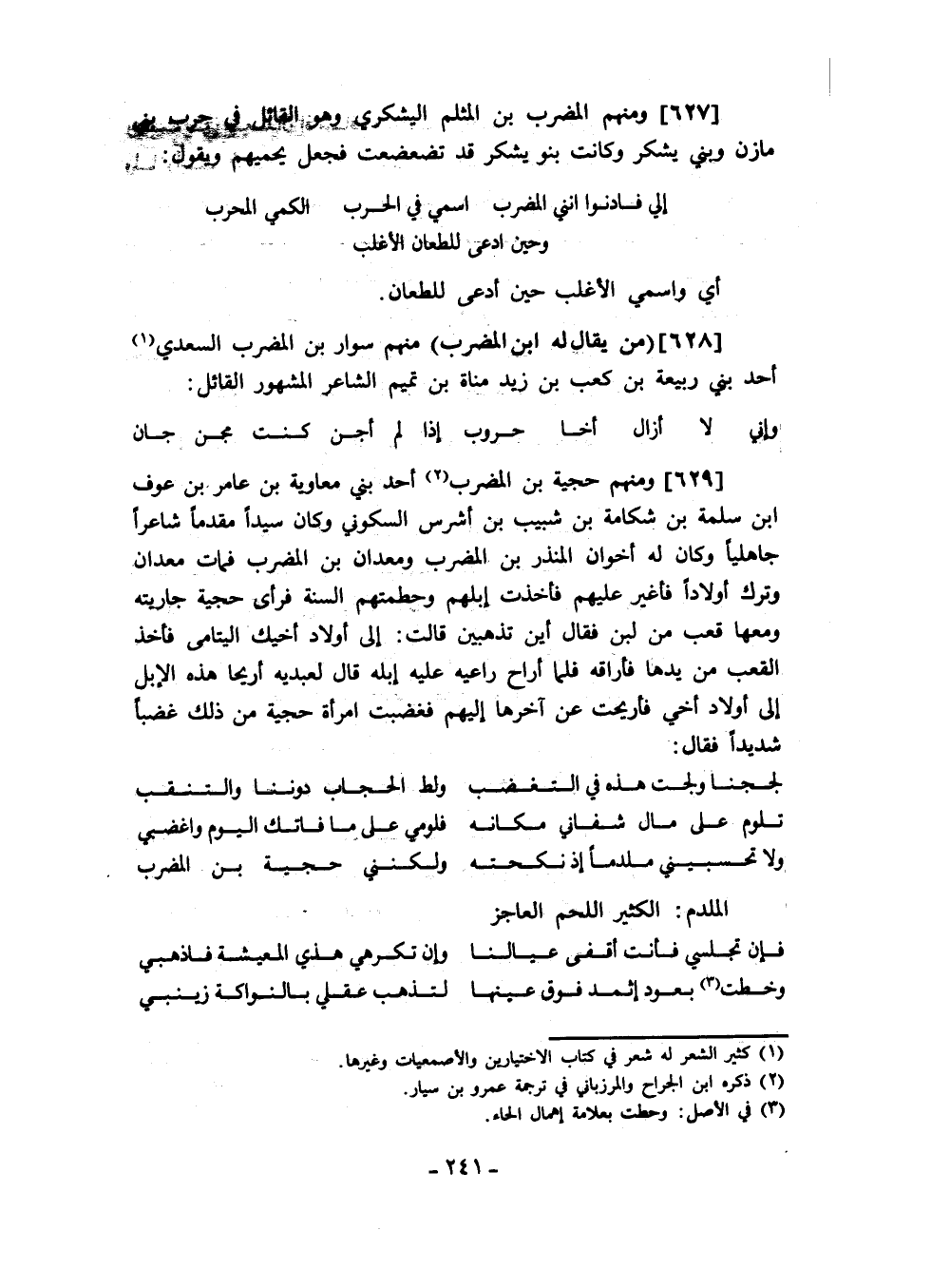 من يقال له ابن المضرب منهم سوار بن المضرب السعدي أحد بني ربيعة بن كعب بن زيد مناة بن تميم الشاعر المشهور القائل: