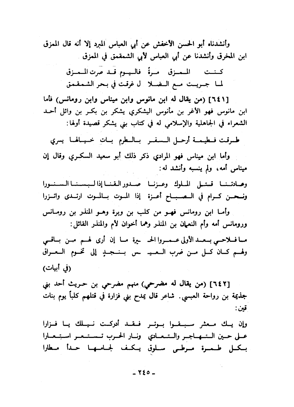 وأنشدناه أبو الحسن الأخفش عن أبي العباس المبرد إلا أنه قال الممزق ابن المخرق وأنشدنا عن أبي العباس لأبي الشمقمق في الممزق