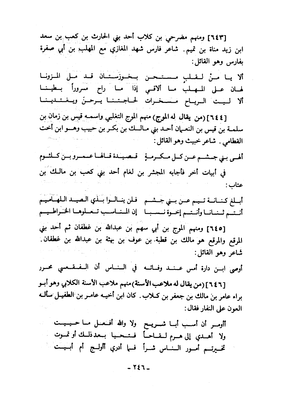 في أبيات أخر فأجابه المجشر بن لغام أحد بني كعب بن مالك بن عتاب: