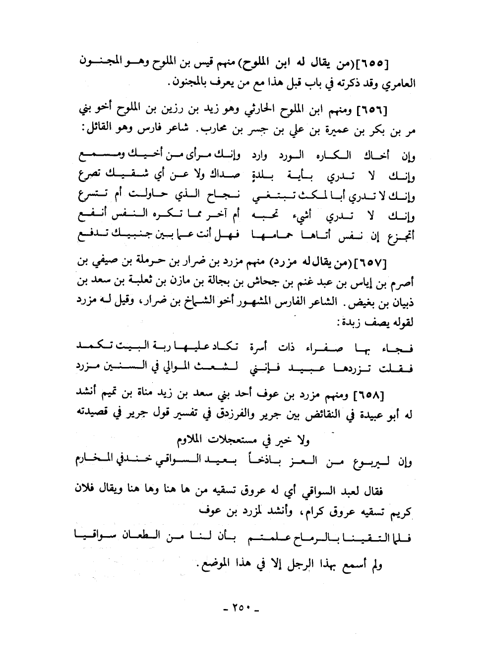 ومنهم مزرد بن عوف أحد بني سعد بن زيد مناة بن تميم أنشد له أبو عبيدة في النقائض بين جرير والفرزدق في تفسير قول جرير في قصيدته